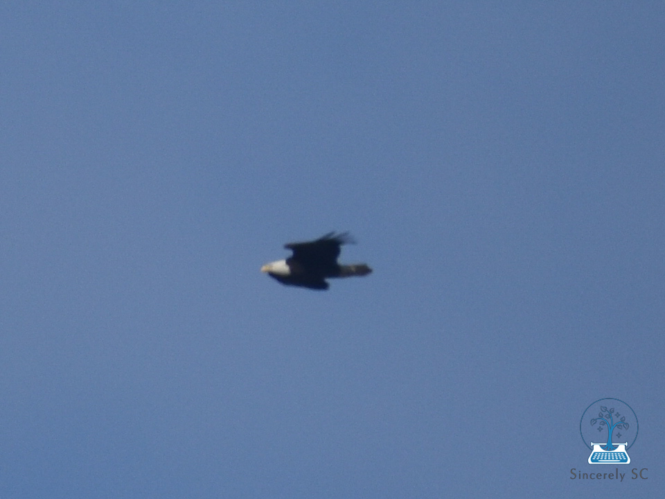 This Christmas Eve, my boyfriend and I spotted another pair of bald eagles from our 3rd floor apartment window. My boyfriend saw them first; “What kind of bird is that?” he asked, as we ate breakfast. “Looks like a bald eagle.” And it was! And soon there was a second! We watched as they flew overhead for several minutes. I believe this was an extra good sign for the year ahead.
