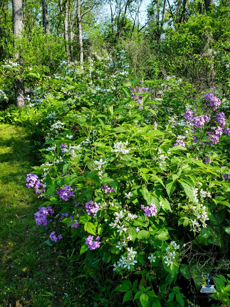 Speaking of the gifts Mother Nature provides, June brings signs of exciting growth at the cottage! Everything is lush and green now, and at the start of the month, there were endless wildflowers. The middle section of our woods is where our wild blackberries live, and their flowers were in full majestic bloom! Pictures and videos will never do it justice, never capture the full magnitude of these blooms, fragrant and buzzing with hundreds of bees, thousands of flowers surrounding you in all directions, as far as you can see. I imagine fairies dance here in the night, just as the bees dance and sing there in the day. Now, at the end of June, the flowers have fallen off, and little berries are forming, green and small. I can’t wait for when they’re ripe later this season, when we can taste their juicy sourness, and thank Mother Nature for this abundant gift we’re so, so lucky to have growing so prolifically in the wild.