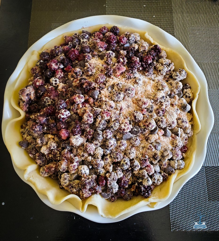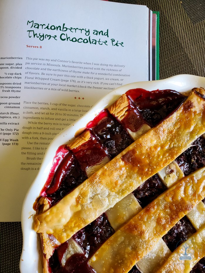 • As I mentioned I’d do in last month’s post, I baked a blackberry pie with our foraged wild blackberries from the cottage woods! I used the Marionberry Chocolate Thyme Pie recipe in Spencre McGowan’s cookbook, Forest & Home, but substituted the blackberries in place of the marionberries. The recipe was so quick and easy, and the pie was delicious! Sweet yet earthy, with the right ratio of chocolate to berry. There’s something amazingly special about baking with wild food that was growing in your own backyard. I really felt connected to the pie while baking it, through the connection I had with the berries and the land that so graciously gifted them to us. I watched these wild blackberries grow throughout the season, and watched the woods provide for them for years. That makes the pie taste even better.