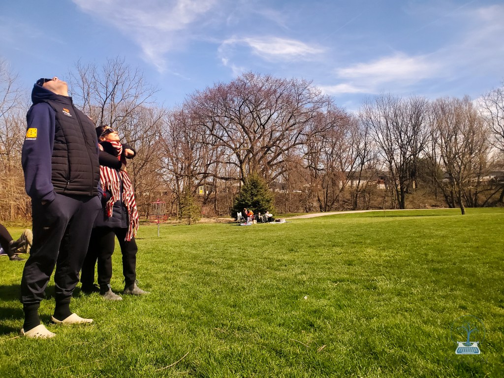 Totality was near. The sky darkened. It was a different kind of dark, not like a sunset or dusk, or even when a storm rolls in. A different shade, one eerie and otherworldly. Shadows on the ground began to pulse and create waves, a phenomenon we later learned was called shadow bands. The birds’ chirps became frantic and shrill. Bugs swarmed as though it were dusk. I shivered in the coming cold. Through my glasses, the sun got smaller and smaller, until it was swallowed completely…