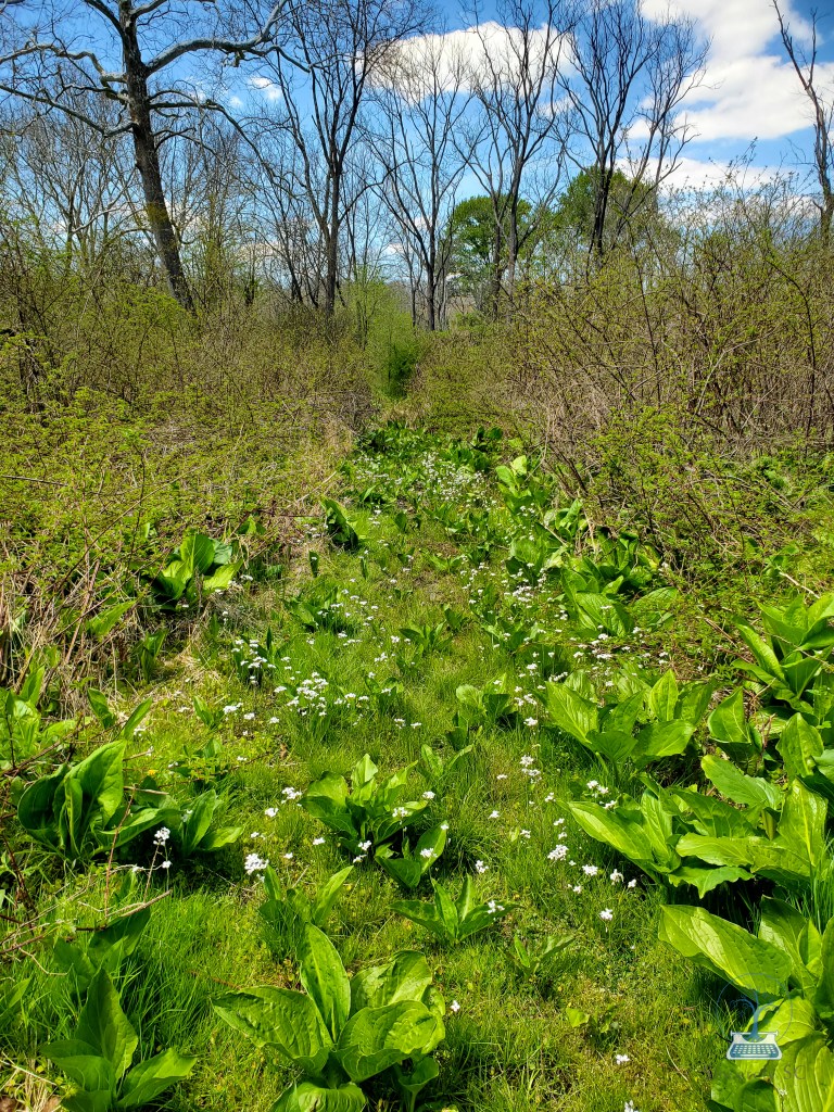 I can’t stop grinning from ear to ear. The forest floor is covered in spring ephemerals: trout lily, wild violets (purple, white, and white with purple stripes!), spring beauty, lady’s smock. Ferns and mayapples are starting to unfurl. Every now and then, I spot a jack-in-the-pulpit standing tall. I feel like skipping, frolicking, prancing through the trees, dancing among the wildflowers. When no one is around, I do frolic a little along the trail, imagining I’m in a sundress and living as free as a fairy in the flower-filled woods…
